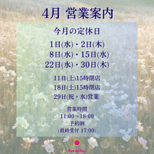 ■4月29日(水)は祝日の為営業、翌木曜日を店休とさせていただきます。