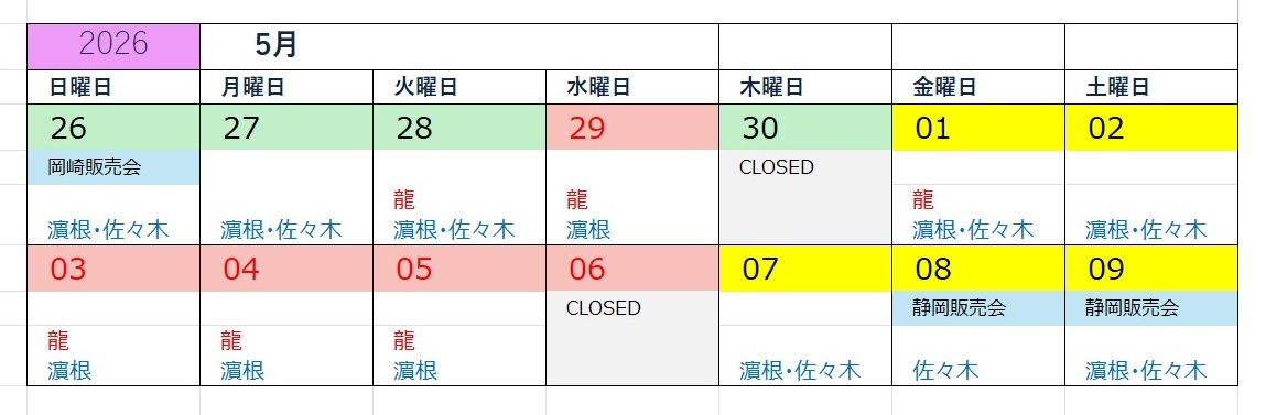 5月 7日(木)~5月10日(日)通常営業